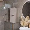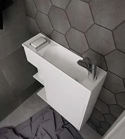 • Подвесной тип крепления облегчает уборку и визуально расширяет пространство. Интегрированная ручка пенала становится стильным дополнением пенала.
