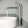 Стильный высокий смеситель для настольного умывальника удачно сочетает актуальный современный дизайн и новый трендовый оттенок матового хрома с брашированным покрытием. Тонкая удлиненная ручка добавляет смесителю изящества и комфорт в управлении. Расстояние между ручкой и изливом увеличено для большего удобства.