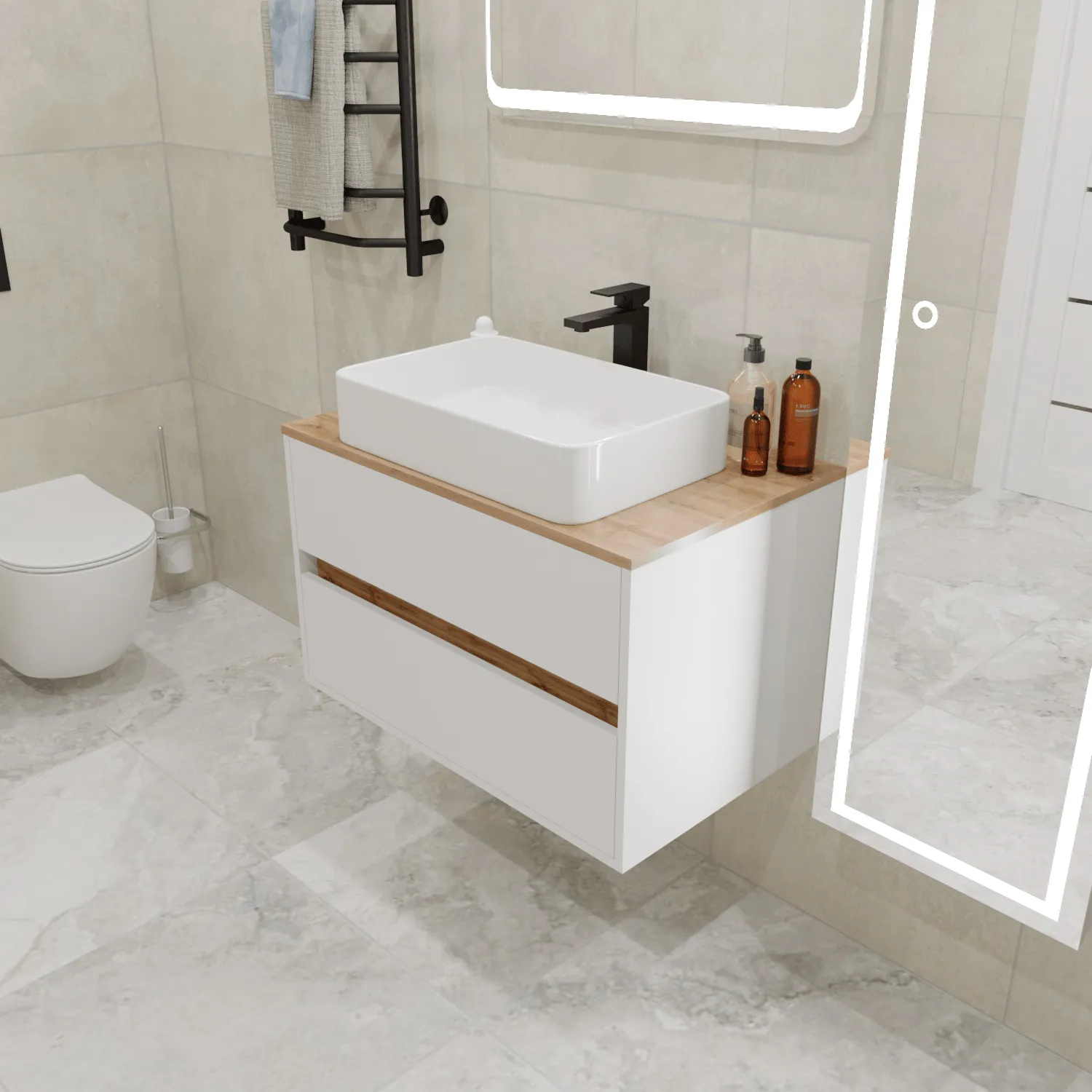 14 017 Р Тумба со столешницей ВЕЛЛИ/Veil 80П (800х500х500) 2я белая аляска/дуб вотан