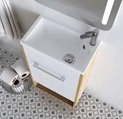 11 330 Р Тумба под раковину Veil 60П (590х560х450) 2я белая аляска/дуб вотан