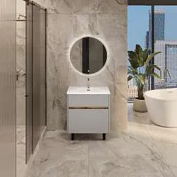 11 330 Р Тумба под раковину ВЕЛЛИ/Veil 60П (590х560х450) 2я белая аляска/дуб вотан